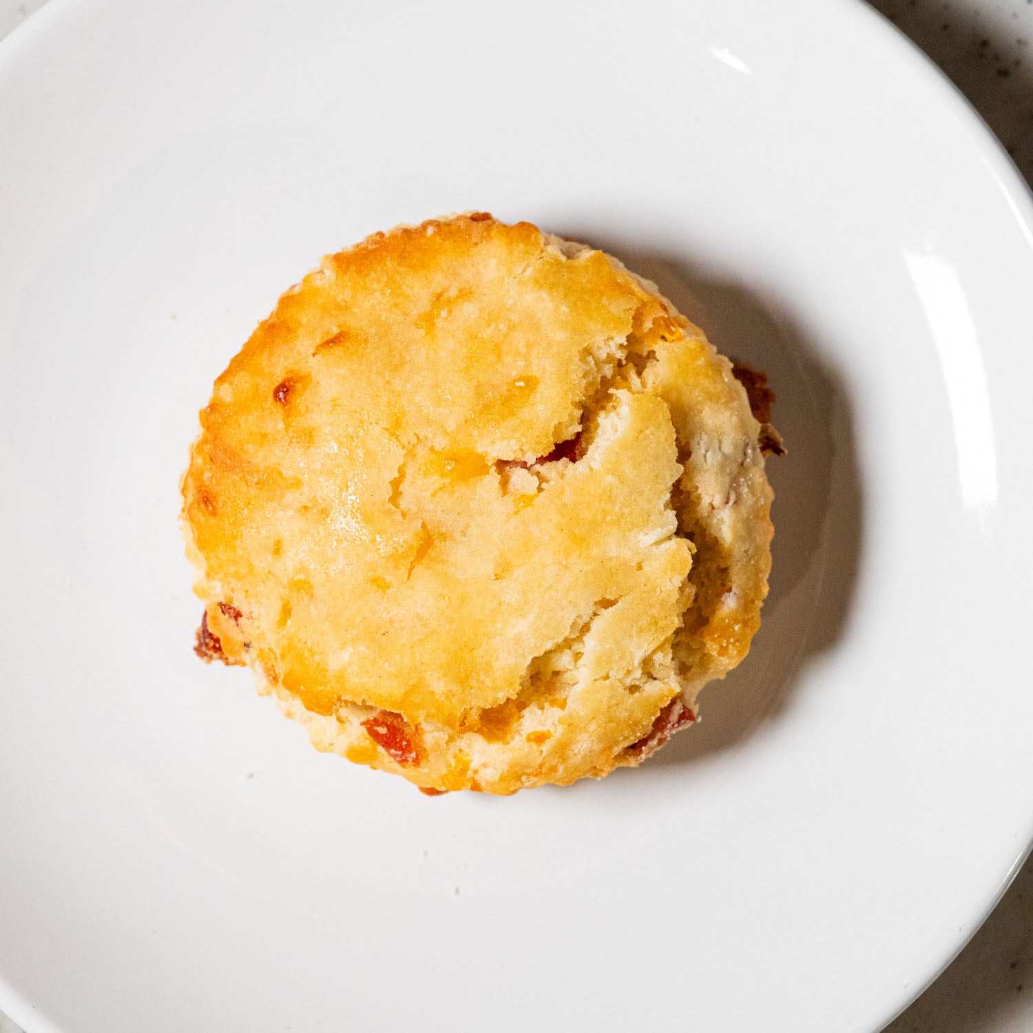 A savory twist on our classic scone—flaky, buttery layers baked with sharp cheddar and smoky bacon. Rich and hearty yet delicately balanced, it’s a perfect morning bite or an afternoon pick-me-up. Crafted with care, this scone celebrates comfort with refinement.