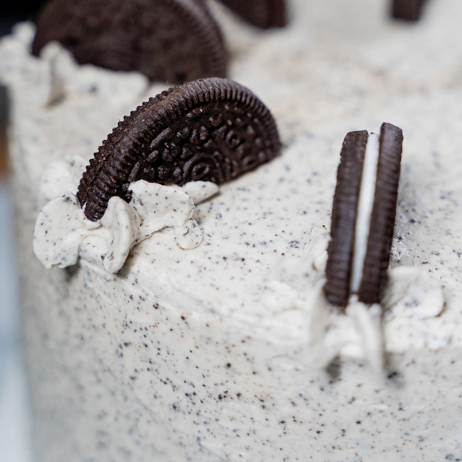 Our cookies and cream chocolate cake comes as a layered cake that is packed full of flavor and moisture! The chocolate sponge is both rich in flavor and light in texture and is covered with a fluffy cookies and cream buttercream icing. This cake practically melts in your mouth.