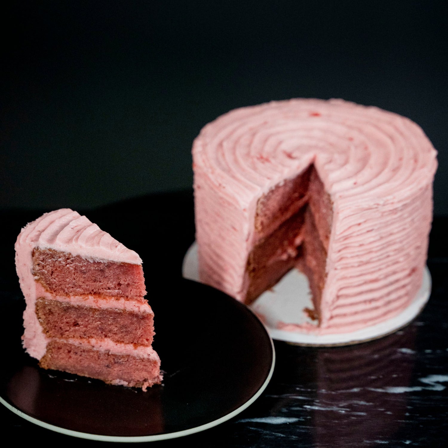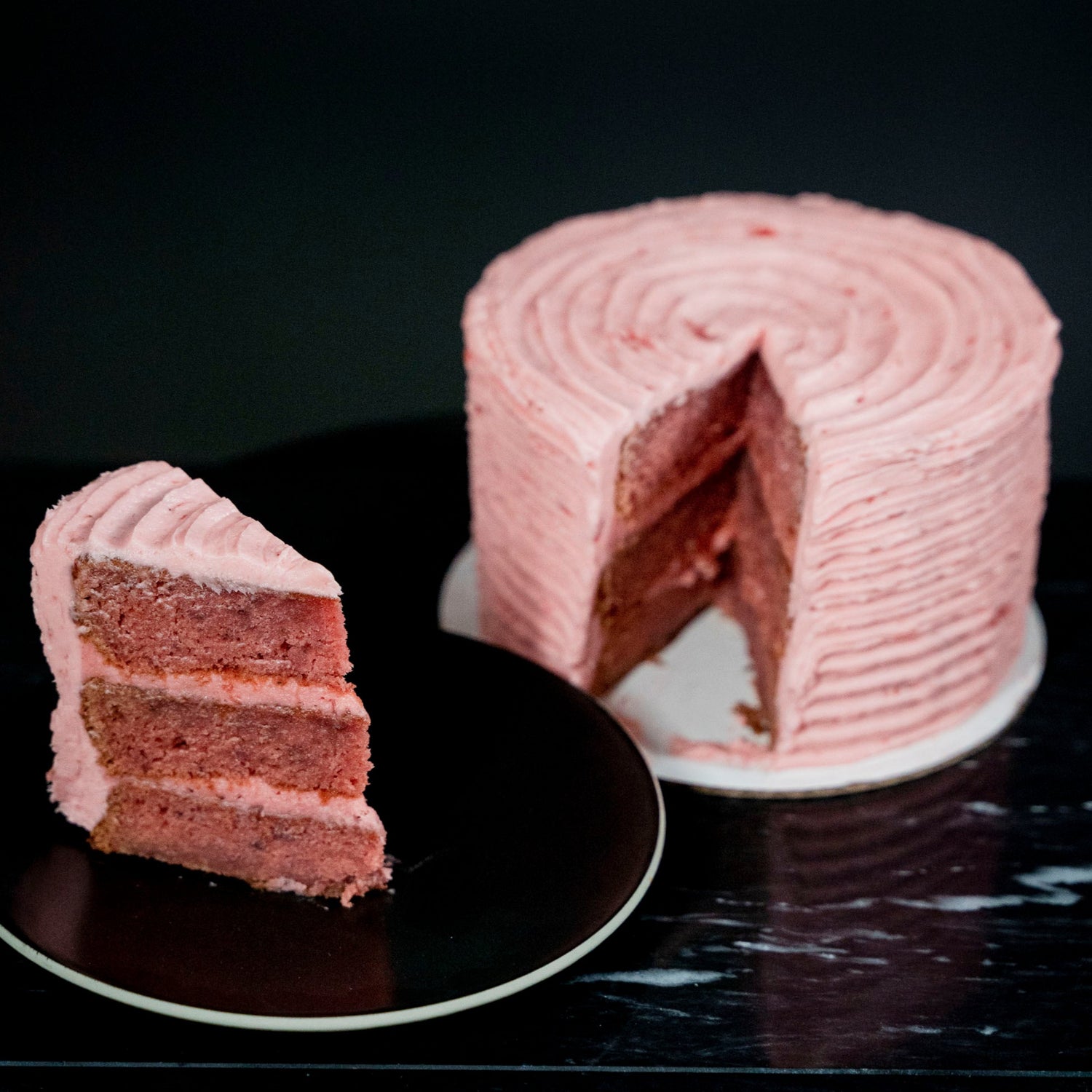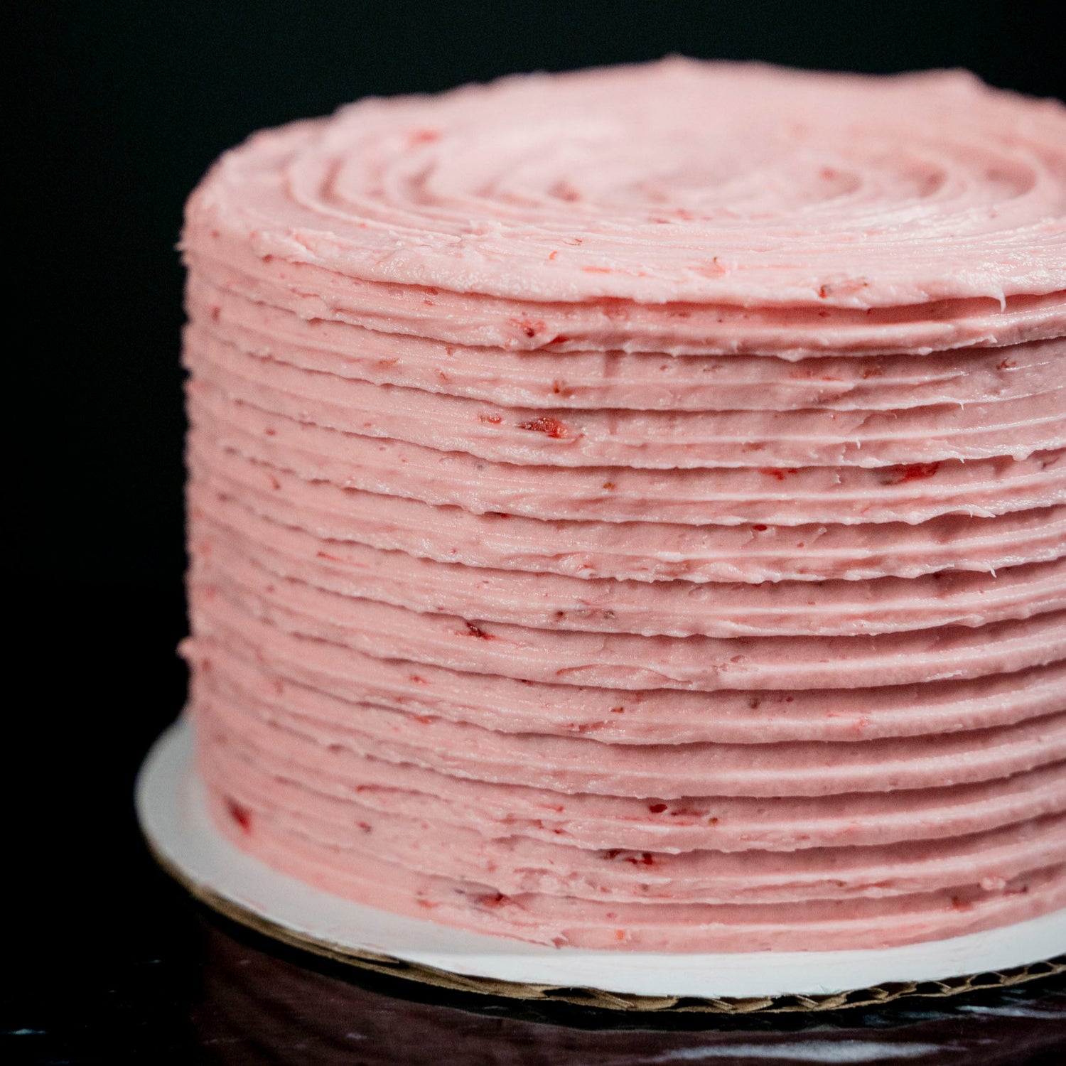 A highly requested cake, this layered cake is made with fresh strawberry puree, buttermilk, and frosted with the softest of buttercream! Great for a spring party or family gathering!