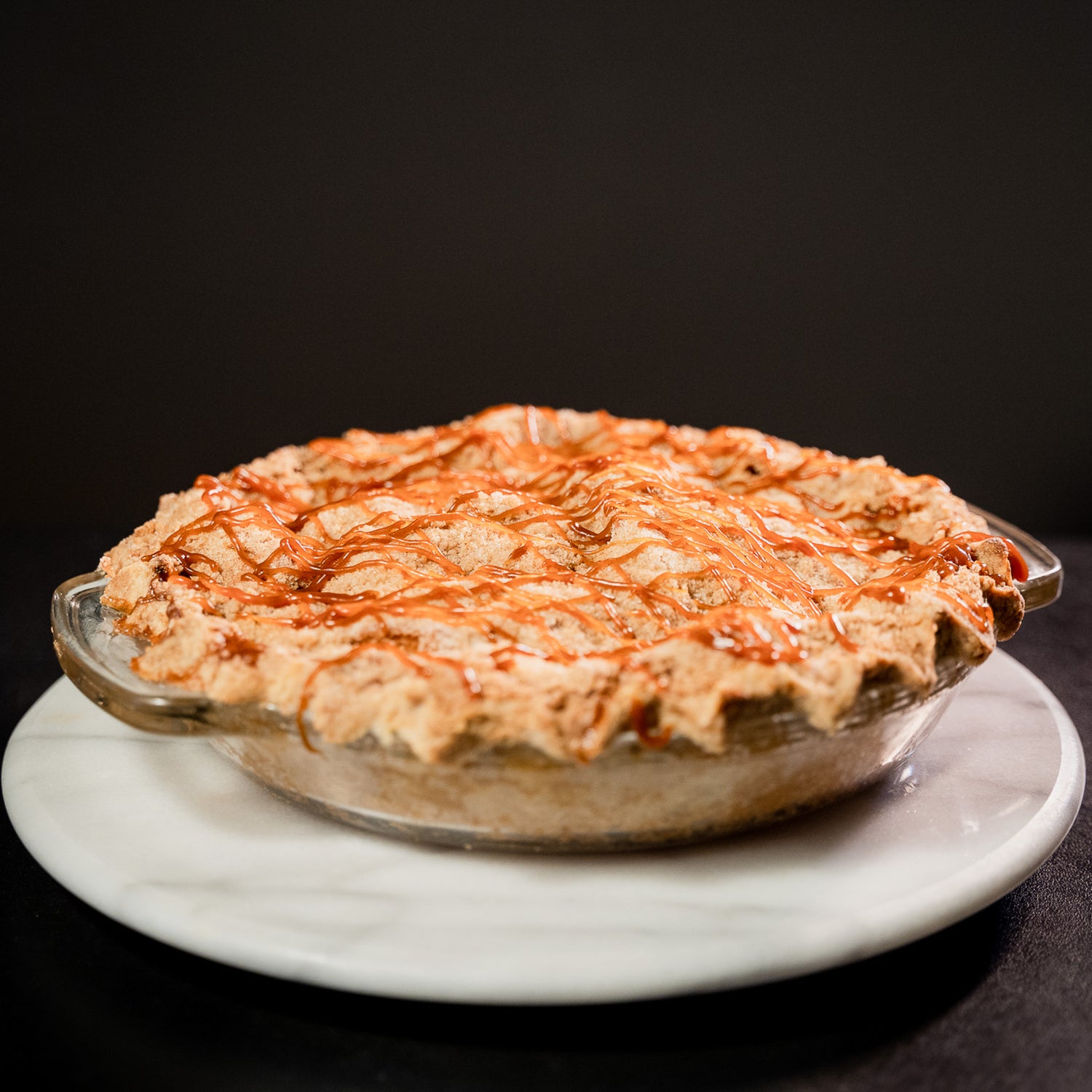 Move over grandma! This apple pie takes a traditional pie and elevates it with a caramel-drizzled, cinnamon sugar crumble on top of granny smith apples and flaky, butter crust. Perfect balance between tartness and sweetness. Great for breakfast the next day too ;-)