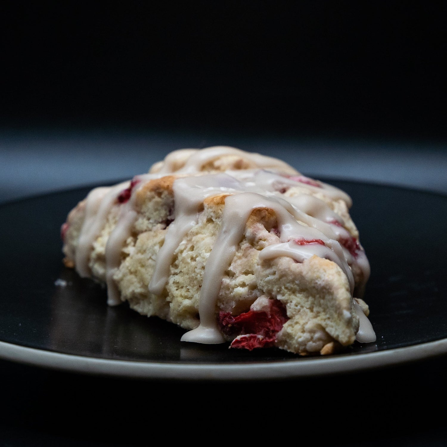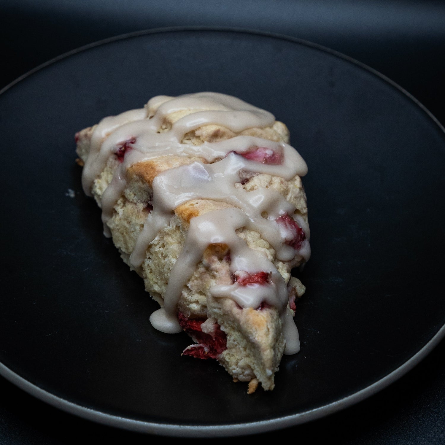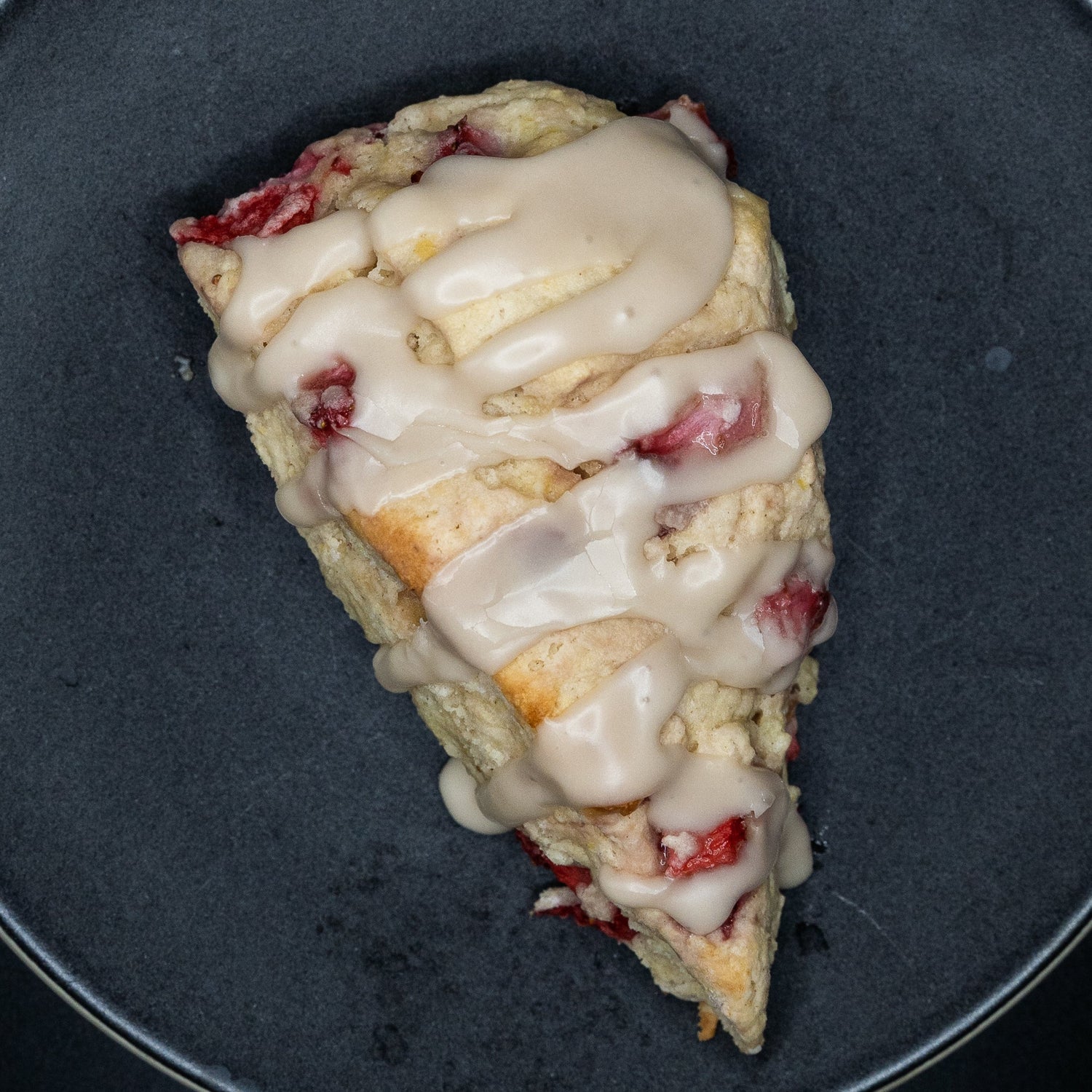 Our strawberry scone is packed with flavor and has delightfully layers of buttery goodness. Finished with a vanilla and cinnamon glazing.