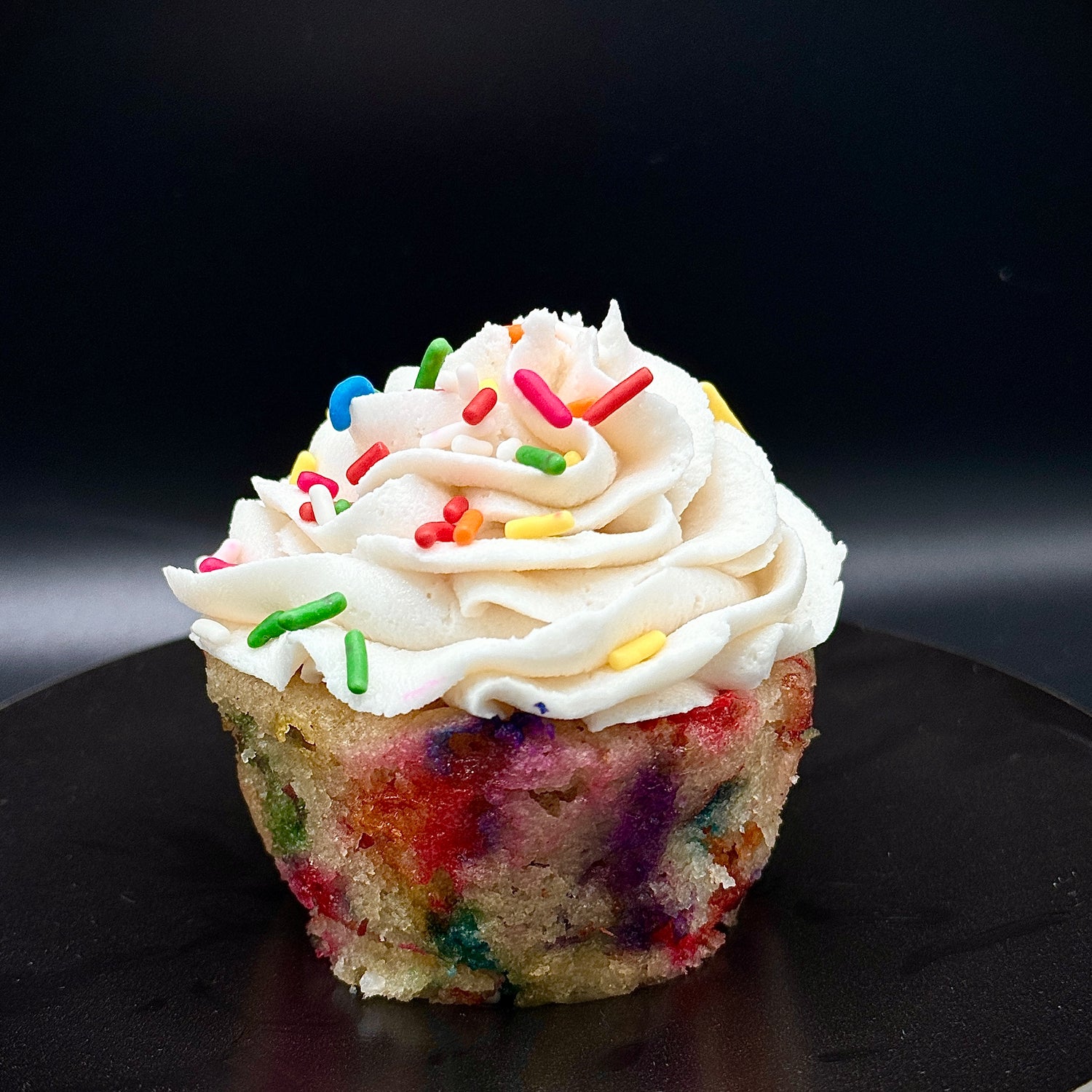 Having multiple food allergies can be extremely tiresome and honestly sad. Our VEGAN confetti cupcake tries to make life a little brighter for those with multiple food allergies. Our confetti is a vanilla crumb, mixed with loads of sprinkles, and then topped with a dairy free icing. We hope it instantly transports you to the fun of childhood birthday parties.